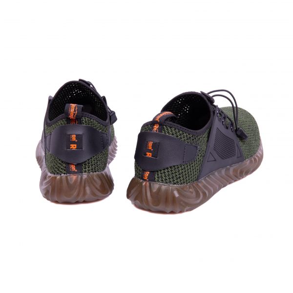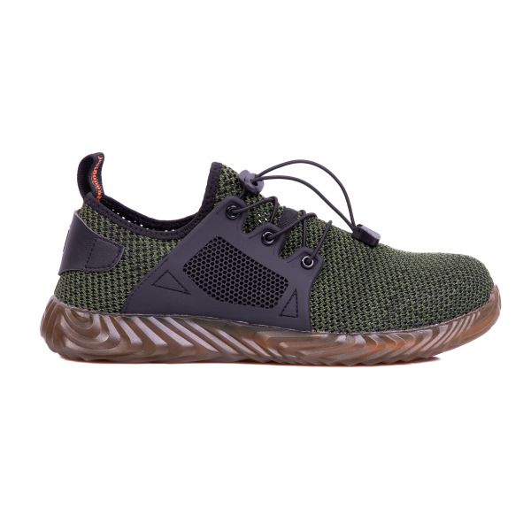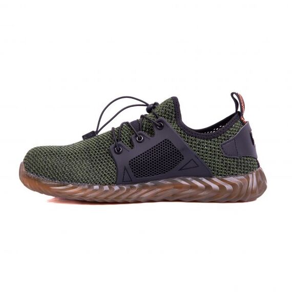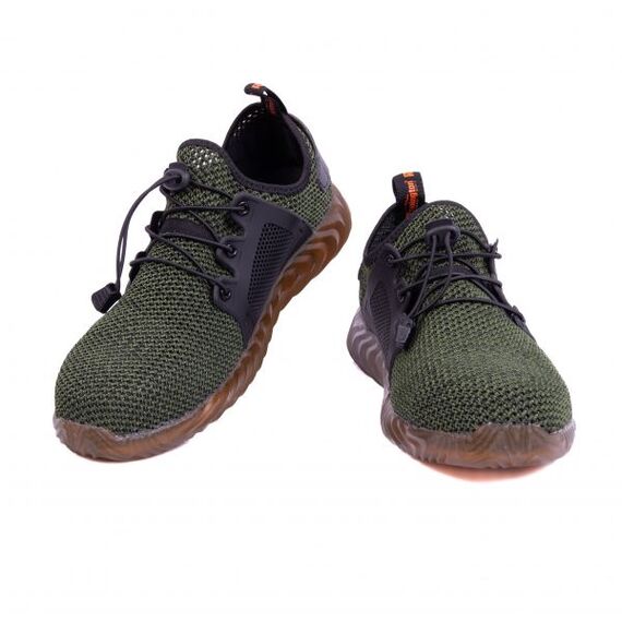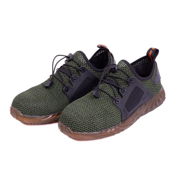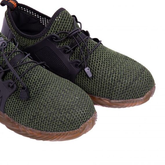 Верх модели изготовлен из прочной сетчатой ткани, устойчивой к износу и одновременно обеспечивающей вентиляцию, что особенно важно при высоких температурах. Внутри ботинка предусмотрена анатомическая стелька из EVA и сетки — она снижает ударные нагрузки и повышает комфорт при длительном ношении. Носовая часть усилена вставкой из композитного материала, защищающего пальцы ног от механических повреждений, что делает модель подходящей для строительных и монтажных работ.