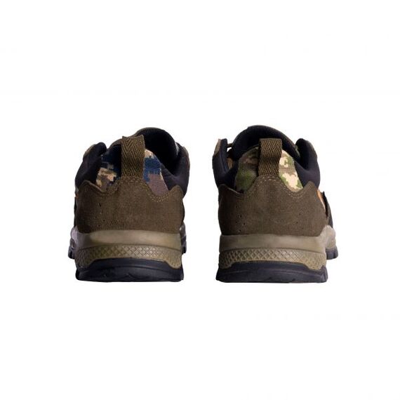 Подошва с прорезиненной подметкой обеспечивает сцепление на пересеченной местности. Промежуточная подошва из ЭВА амортизирует при ходьбе, снижая нагрузку на ноги. Комбинация натуральных материалов и текстиля поддерживает воздухообмен, создавая комфортный микроклимат. Усиленный мысок защищает ноги от ударов о камни и корни деревьев, повышая безопасность в походах.
