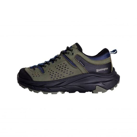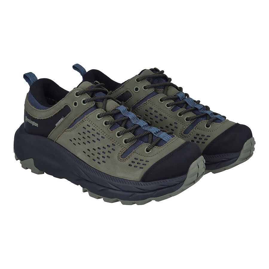 Кроссовки мужские Remington Nepal green созданы для активного отдыха в тёплое время года. Верх модели выполнен из натуральной кожи с перфорацией — это сочетание прочности, долговечности и вентиляции. Водоотталкивающая пропитка Waterproof защищает ноги от влаги при кратковременном контакте с водой.