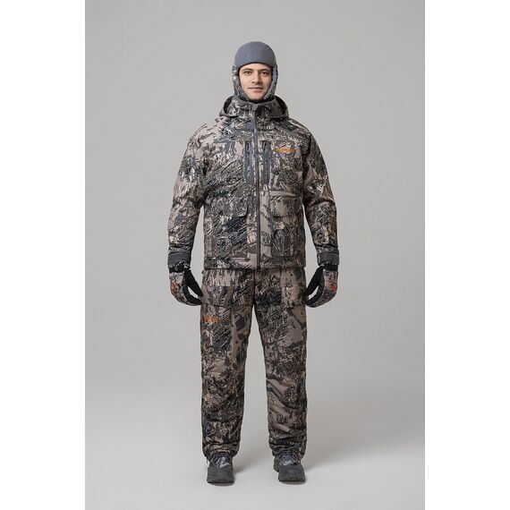 Множество карманов позволяют удобно разместить личные вещи, а регулировки обеспечивают надежную фиксацию костюма на теле, защищая от попадания осадков и холода. Костюм был разработан совместно с охотниками и рыболовами для учета всех потребностей в зимних условиях.