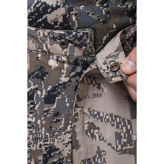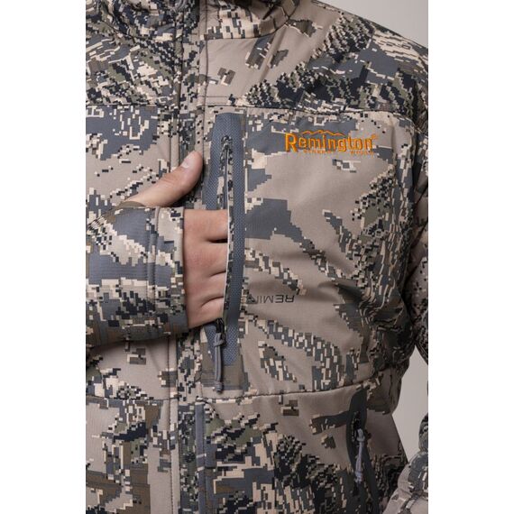 Костюм Remington 3 в 1 Blizzard Figure — универсальная модель трансформер, которая может использоваться при температуре от 0 до -30 °C. Модель включает две куртки: первая — внутренний утепляющий слой, вторая — внешний, защищающий от осадков, а также теплые брюки. Верхний слой выполнен из мембраны Climatic Extreme с паропроницаемостью 10 000 г/м²/24 ч и водонепроницаемостью 10 000 мм, усилен вставками из ткани Оксфорд для повышения износостойкости. Внутренняя куртка выполнена из эластичного полиэстера, который обеспечивает свободу движений и отличную паропроницаемость. Используемый гипоаллергенный утеплитель Pro Heat имеет высокие теплоизоляционные свойства, гидрофобен и сохраняет форму.