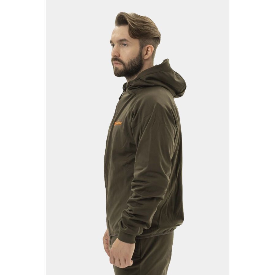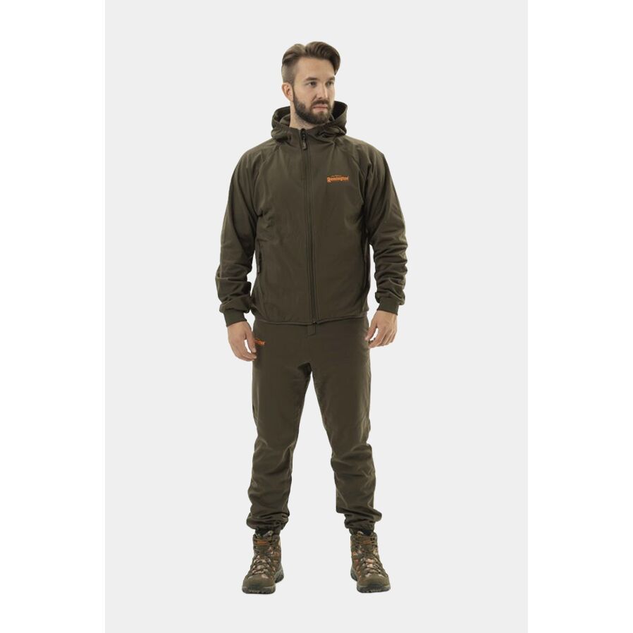 Костюм Remington Alabama Professional Dark Olive изготовлен из обновленной, усиленной ткани с плотностью 320 г/м², что увеличивает износостойкость изделия. Ткань эластичная, не сковывает движения, что обеспечивает комфорт в процессе эксплуатации. Костюм можно использовать как самостоятельное изделие или в качестве утепляющего слоя. Манжеты на рукавах и резинка по низу брюк обеспечивают плотное прилегание и защиту от ветра. Втачной капюшон сохраняет тепло головы и служит дополнительным элементом маскировки.