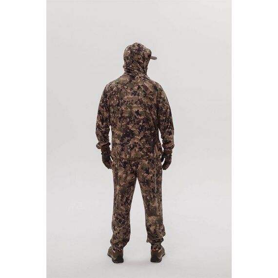 Костюм Remington Alabama Professional Green Forest изготовлен из обновленной, усиленной ткани с плотностью 320 г/м², что увеличивает износостойкость изделия. Ткань эластичная, не сковывает движения, что обеспечивает комфорт в процессе эксплуатации. Костюм можно использовать как самостоятельное изделие или в качестве утепляющего слоя. Манжеты на рукавах и резинка по низу брюк обеспечивают плотное прилегание и защиту от ветра. Втачной капюшон сохраняет тепло головы и служит дополнительным элементом маскировки.