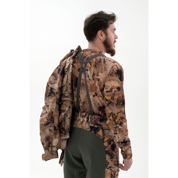 Костюм Remington Mont Blanc Yellow Waterfowl Honeycombs разработан специально для охоты на водоплавающую дичь в условиях переменчивой демисезонной погоды. Модель включает куртку с потайным капюшоном и брюки на подтяжках. Основа комплекта — мембрана Climatic Extreme, обеспечивающая паропроницаемость 10 000 г/м²/24 ч и водонепроницаемость 12 000 мм. Эти характеристики позволяют сохранять тело сухим при высокой активности и эффективно защищают от дождя и ветра. Конструкция учитывает анатомию движения: локти и колени усилены, крой обеспечивает свободу при интенсивной эксплуатации.