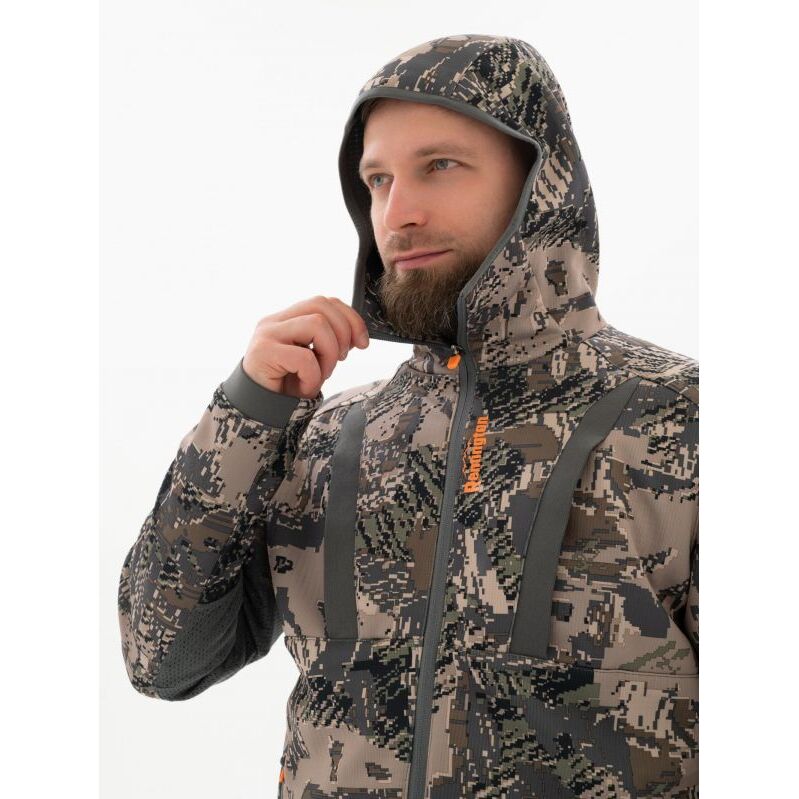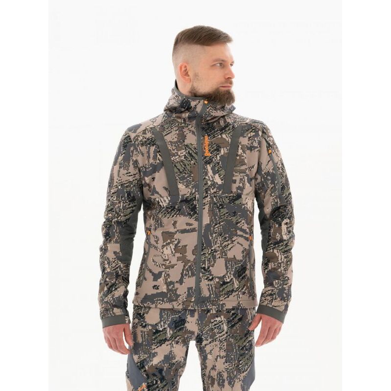Костюм Remington Mountain Range Figure разработан с участием охотников, чтобы соответствовать задачам охоты в тёплый сезон. Изготовлен из бесшумной ткани, которая снижает уровень шума при передвижении. Капюшон защищает от ветра и осадков, а резинка на рукаве фиксирует его на запястье. Прямой крой куртки и анатомическая форма рукава не ограничивают движения. Семь карманов позволяют удобно распределить снаряжение и согреть руки в боковых отсеках.