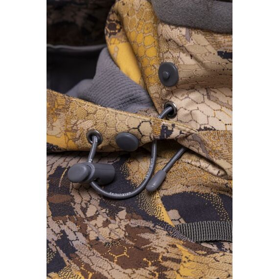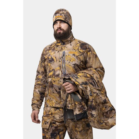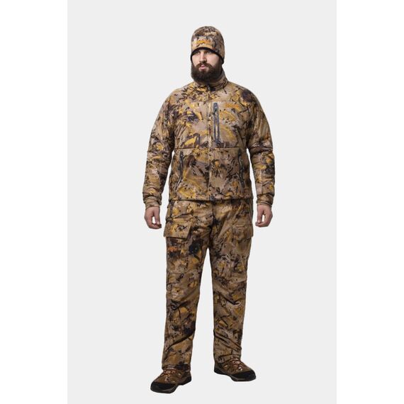 Костюм Remington 3 в 1 Blizzard Yellow Waterfowl Honeycombs — универсальная модель трансформер, подходящая для использования при температуре от 0 до -30 °C. Модель состоит из двух курток: внутренняя утепляющая куртка и внешняя, защищающая от осадков, а также теплые брюки. Верхний слой выполнен из мембраны Climatic Extreme с паропроницаемостью 10 000 г/м²/24 ч и водонепроницаемостью 10 000 мм, усилен тканью Oxford для повышения износостойкости. Внутренняя куртка изготовлена из эластичного полиэстера, обеспечивающего свободу движения и эффективную паропроницаемость. В модели используется гипоаллергенный утеплитель Pro Heat, который сохраняет тепло, гидрофобен и сохраняет форму. Множество карманов позволяют удобно носить все необходимые вещи, а регулируемые элементы помогут плотно зафиксировать костюм и предотвратить попадание осадков и холодного воздуха.