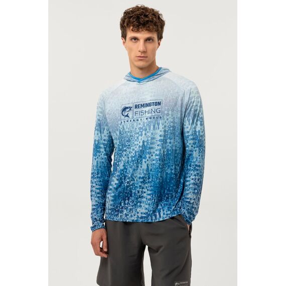 Футболка (джерси) Remington Fishing Sun and Mosquito Protection Style 3 выполнена из тонкого полиэстера, который эффективно отводит влагу и быстро сохнет, обеспечивая комфорт даже в жаркую погоду. Технология SUN Protection надёжно защищает от ультрафиолета, а сертифицированная пропитка Insect Protection отпугивает комаров, мошек и клещей, снижая риск укусов. Втачной капюшон и высокий ворот создают дополнительный барьер от солнца и ветра.