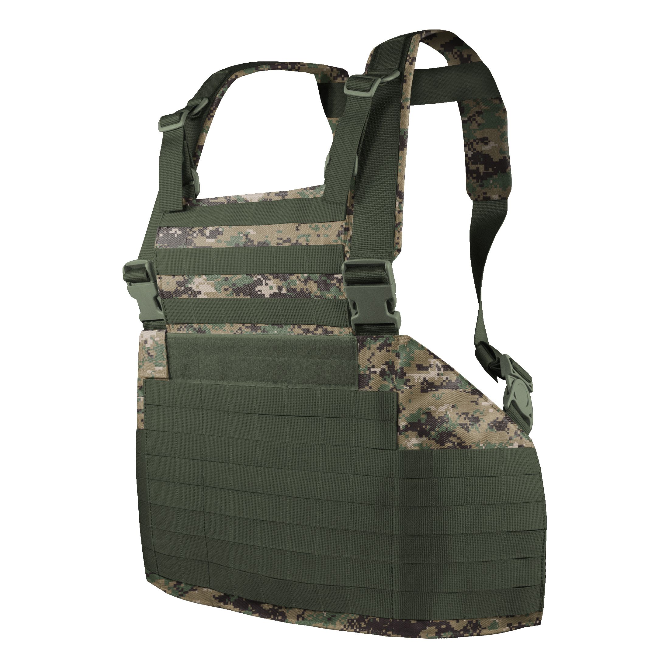 Боевой нагрудник разъемный позволяющий разместить бронеплиты типа SAPI, ESAPI, Гранит. Особенности: - Нагрудник поддаётся регулировке на всех узлах, а также имеет сворачиваемую верхнюю МОЛЛЕ-панель, которую при необходимости можно убрать внутрь нагрудника. - Внутренняя часть изделия выполнена из специальной дышащей 3D-сетки, которая позволяет отводить влагу в жаркое время года, а также обеспечивает комфортное прилегание к телу бойца. - Бронеплиты размещаются в специальный карман нагрудника и надежно удерживаются внутри с помощью строп. - Нагрудник может быть использован в комплекте с задней частью (спиной). Характеристики: Материал: нейлон плотностью 1000D, или нейлон плотностью 500D с ИК ремиссией Фурнитура: WJ, Duraflex Вес: 1200 грЦвет: MARPAT, ИК ремиссия: Нет