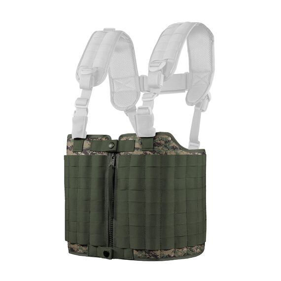 Нагрудник разгрузочный быстросъемный на молнии, текстильный, универсальный, регулируемый, оснащенный PAL-ячейками для фиксации снаряжения по системе MOLLE, приспособлениями для крепления к наплечной открытой разгрузочной системе MOLLE (арт.3617) производства Стич Профи, г.Екатеринбург.