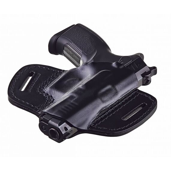 Кобура поясная Т-11 модель № 1 (открытая с 2 ушами), производства предприятия Стич Профи г.Екатеринбург, предназначена для ношения и быстрого извлечения пистолетов Т-11. Данная кобура изготавливается из натуральной кожи импортного производства и прошита высококачественными нитками со специальной пропиткой, повышенной толщины немецкой фирмы Gutermann. При производстве кобуры использована двухсторонняя формовка, которая выполнена на специальном оборудовании с применением формовочного состава производства Итальянской фирмы KENDA FARBEN для придания кобуре соответствующей формы и жесткости. Данная технология обеспечивает идеальное облегание оружия кобурой, что обеспечивает удержание оружия в кобуре даже без дополнительного хлястика. Формовка выполняется по конкретному виду оружия, что гарантирует высокое качество изделия. Кобура изготавливается в двух основных цветах, черном и коричневом (цвета коньяка) и предназначена для ношения на правой стороне под правую руку. Расположение пистолета относительно ремня с небольшим наклоном вперед на 10-15 градусов. Конструкция кобуры обеспечивает плотное удержание пистолета, поэтому дополнительный хлястик отсутствует, что позволяет использовать оружие за менее продолжительный промежуток времени. Два уха, через которые проходит ремень максимально прижимают кобуру с пистолетом к поясу, что делает пистолет практически незаметным даже с легкой одеждой. Ширина прорезей в «ушах» на кобуре по умолчанию рассчитаны на ремень шириной 40 мм. Но по желанию покупателя может быть изменена под ремень другой ширины. По спецзаказу покупателя возможно изготовление данной кобуры для левши, то есть на левую сторону, под левую руку. Так как в процессе формовки кобуры кожа немного "садится в размерах", первоначальное размещение и извлечение оружия в кобуре может быть затруднительно. Кобура должна пройти период "притирки" к Вашему оружию, которая заключается в не многократном размещении и извлечении пистолета и может продлиться один-два дня. Это неудобство будет компенсировано в дальнейшем плотным размещением оружия в кобуре на протяжении всего срока службы.Расположение: Правша, Цвет: Черный, Ширина ремня: 40 мм.