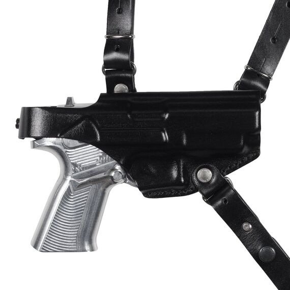 Формовка выполняется по конкретному виду оружия, что гарантирует высокое качество изделия. Кобура изготавливается в двух основных цветах, черном и коричневом (цвета коньяка) Кобура предназначена для скрытого ношения под верхней одеждой на левой стороне, под левой рукой с извлечением оружия правой рукой. Расположение пистолета горизонтальное. Конструкция кобуры обеспечивает плотное удержание пистолета при беге, наклоне, кувырке и т.д., но наряду с этим и моментальное извлечение оружия в нужный момент. С внутренней части кобуры имеется ремень, фиксирующий саму кобуру к брючному ремню. Кобура снабжена двумя широкими наплечниками, которые обеспечивают комфортное ношение оружия длительное время и равномерно распределяют нагрузку на плечах. С правой стороны для удобства ношения, что бы оттяжки не давили под мышкой и для равномерного распределения нагрузки на плечи имеется оттяжка, которая так же как и с левой стороны фиксирует наплечную систему к брючному ремню.