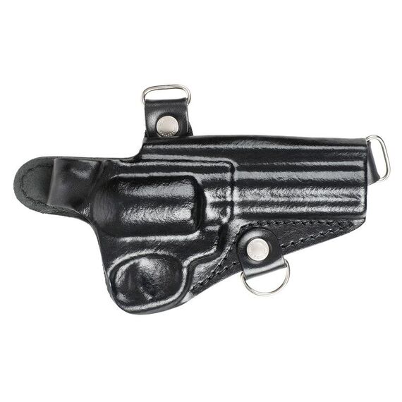 Кобура наплечная для револьвера Гроза Р-04, производства предприятия Стич Профи г.Екатеринбург, предназначена для скрытого ношения и быстрого извлечения револьвера Гроза Р-04. Данная кобура изготавливается из натуральной кожи импортного производства и прошита высококачественными нитками со специальной пропиткой, повышенной толщины немецкой фирмы Gutermann. При производстве кобуры использована двухсторонняя формовка, которая выполнена на специальном оборудовании с применением формовочного состава производства Итальянской фирмы KENDA FARBEN для придания кобуре соответствующей формы и жесткости. Данная технология обеспечивает идеальное облегание оружия кобурой, что обеспечивает удержание оружия в кобуре даже без дополнительного хлястика. Формовка выполняется по конкретному виду оружия, что гарантирует высокое качество изделия. Кобура изготавливается в двух основных цветах, черном и коричневом (цвета коньяка) Кобура предназначена для скрытого ношения под верхней одеждой на левой стороне, под левой рукой с извлечением оружия правой рукой. Расположение пистолета горизонтальное. Конструкция кобуры обеспечивает плотное удержание пистолета при беге, наклоне, кувырке и т.д., но наряду с этим и моментальное извлечение оружия в нужный момент. С внутренней части кобуры имеется ремень, фиксирующий саму кобуру к брючному ремню. Кобура снабжена двумя широкими наплечниками, которые обеспечивают комфортное ношение оружия длительное время и равномерно распределяют нагрузку на плечах. С правой стороны для удобства ношения, что бы оттяжки не давили под мышкой и для равномерного распределения нагрузки на плечи имеется оттяжка, которая так же как и с левой стороны фиксирует наплечную систему к брючному ремню. ВНИМАНИЕ! На кобуре, в месте крепления к ремню, использована кнопка направленного действия. Кнопка открывается (закрывается) только в одном направлении, что бы исключить расстегивание под действием силы тяжести оружия. Застегивание кнопки происходит в обратном направлении расстегиванию. Для закрепления на противоположной стороне, под правой рукой, одного или двух пеналов под запасные магазины можно использовать дополнительные подвесные системы. Для одного магазина артикул 3030. Для двух магазинов артикул 3031. По спецзаказу покупателя возможно изготовление данной кобуры для левши, то есть на левую сторону, под левую руку. Так как в процессе формовки кобуры кожа немного "садится в размерах", первоначальное размещение и извлечение оружия в кобуре может быть затруднительно. Кобура должна пройти период "притирки" к Вашему оружию, которая заключается в не многократном размещении и извлечении пистолета и может продлиться один-два дня. Это неудобство будет компенсировано в дальнейшем плотным размещением оружия в кобуре на протяжении всего срока службы.Расположение: Правша, Цвет: Черный