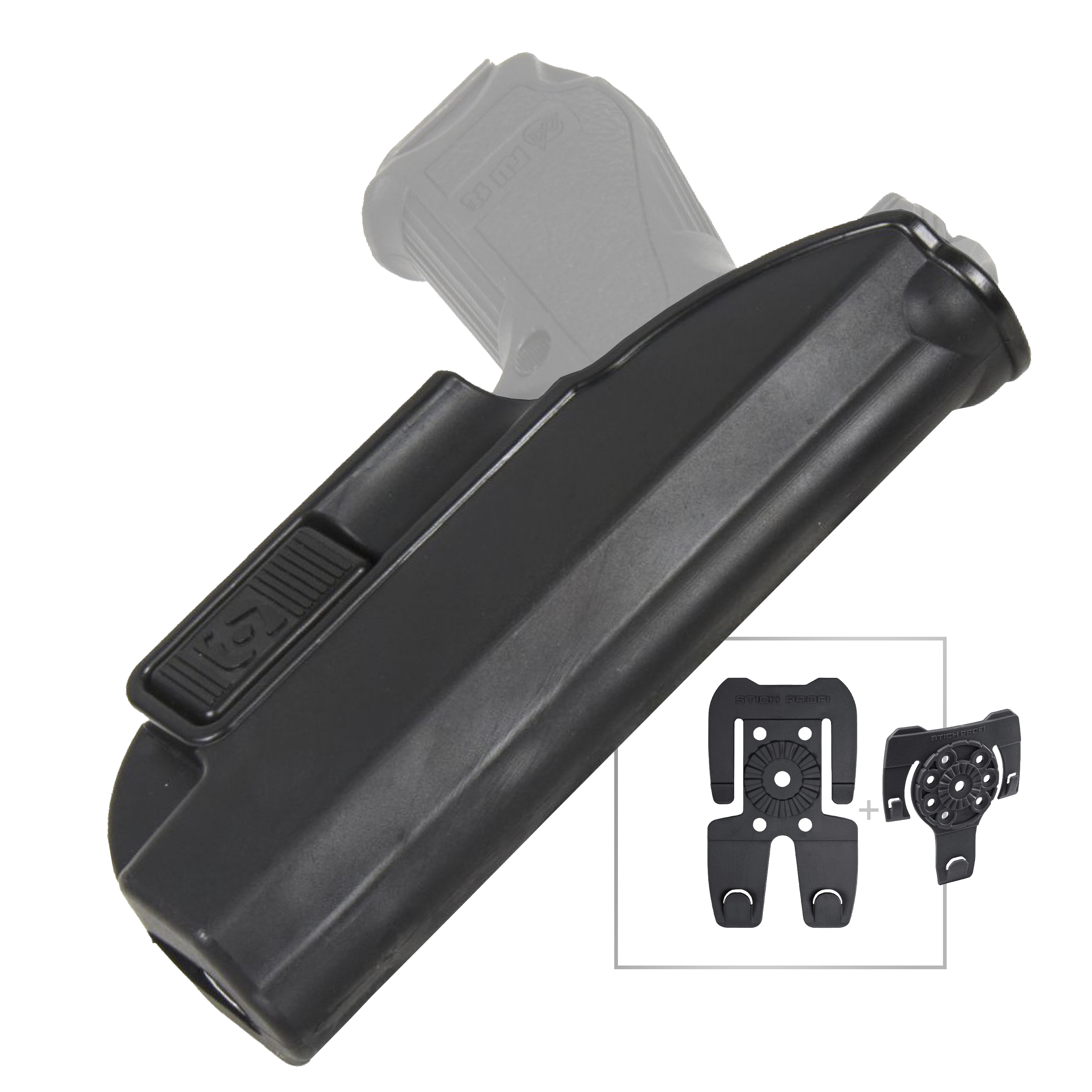 В комплекте с кобурой идут два крепления на МОЛЛЕ типа "Краб" (большой и малый), с возможность поворота угла наклона кобуры.Расположение: Правша, Цвет: Черный