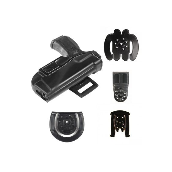 Набор включает любую кобуру из раздела Кобуры Альфа ,,+ все крепления. Покупая данный набор, вы экономите более 30%, и получаете возможность использовать кобуру для различных задач, при необходимости ,,меняя крепления. ВНИМАНИЕ! Комплектуется новыми креплениями!В комплекте идёт: - Поясное крепление, - Полицейское выносное крепление (подходит для ношения с бронежилетом или другим объемным обмундированием), - Большой адаптер "Краб" (для ношения на МОЛЛЕ-снаряжении), - Малый Краб (для ношения на МОЛЛЕ-снаряжении, занимает меньше места), - Быстросъемное крепление (обычно используется в спортивных целях),Расположение: Правша, Цвет: Черный, Модель: ПЯ