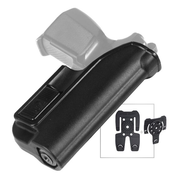 В комплекте с кобурой идут два крепления на МОЛЛЕ типа "Краб" (большой и малый), с возможность поворота угла наклона кобуры.Расположение: Правша, Цвет: Черный