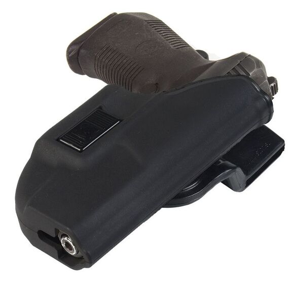 Крепление кобуры является выносным и рассчитано ,на ремень до 50 миллиметров, и позволяет регулировать угол наклона в произвольном положении. Подходит для использования с объемным обмундированием, бронежилетом, бушлатом и т.п.Цвет: Черный