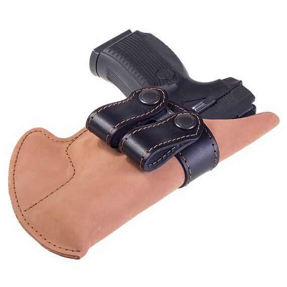 Основным предназначением поясной кобуры для пистолета Викинг (модель №13) от компании Стич Профи из Екатеринбурга, является ношение и оперативное извлечение оружия в летний период. Кобура данной модели предназначается для ношения как на левой (под правую руку в районе 10-11 часов), так и на правой стороне (под правую руку, в районе 1-5 часов). Расположение пистолета относительно ремня под прямым углом. Благодаря уникальной конструкции кобуры для пистолета Викинг обеспечивается плотное удержание пистолета (дополнительный хлястик не предусмотрен), что позволяет использовать оружие за менее продолжительный временной промежуток.