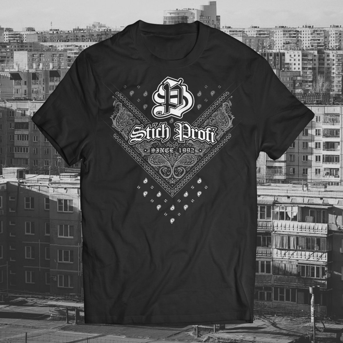 Черная футболка West coast. Этот принт, как и все, выполняемые Stich Profi наносится на футболку методом «шелкография» - это обеспечивает долговечность рисунка и гарантирует простой уход за вещью без вреда для неё. Он довольно любопытен и несмотря на агрессивный внешний вид хорошо сочетается с повседневной одеждой стилей «casual» и «military». Цветной принт на черной футболке высокого качества. Состав: 100% хлопок Плотность: 170 г/м Размер Российский размер Ширина изделия по лии груди (1) Длина, см (+/-1) (2) S 46-48 48 70 M 48-50 51 72 L 50-52 54 74 XL 52-54 57 76 XXL 54-56 60 78Размер: L