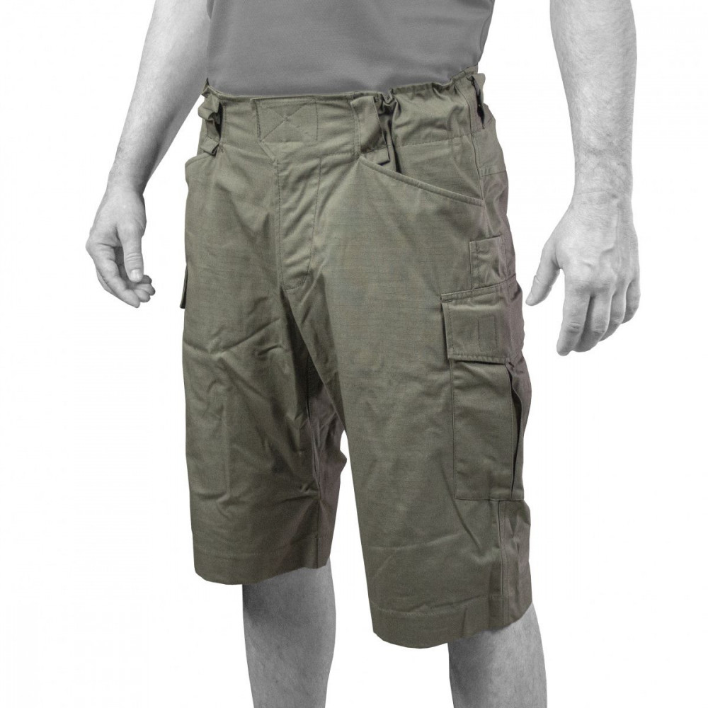 Тактические шорты "Сафари". Мужские бермуды «Сафари» в силе милитари - удобная и практичная одежда для теплого времени года. Они предназначены как для профессионалов, так и для широкого круга потребителей. , Бермуды выполнены из ткани Рип-стоп. «Рип-стоп» - ткань смесовая, состоит из 50% нейлона и 50 % хлопка. Натуральные и синтетические волокна в ткани ,позволяют сочетать лучшие свойства синтетических и натуральных материалов. , Нейлон уникальный материал, созданный компанией DuPont в 1935 г. Лёгкий, упругий, быстросохнущий, исключительно прочный и износостойкий материал, выработанный из полиамидных волокон, обладающих низкой пиллингуемостью. Полиамидные волокна не разрушаются микро-организмами и плесенью, не растворяются органическими растворителями, стойки к действию щелочей любой концентрации. Обладает огнестойкостью. Присутствие нейлона обеспечивает данному плащевому материалу несминаемость, устойчивость к многократным деформациям и водоупорность поверхностного слоя из которого состоит комплексный материал. , Наличие в составе ткани хлопка обеспечивает гигиенические свойства , - хорошая гигроскопичность – возможность быстро впитывать и отдавать влагу, воздухопроницаемость и паропроницаемость, умеренная теплозащитность. , Ткань легко стирается, не требует глажки. Название «рип-стоп» образовано двумя английскими словами: «rip» — рваться и «stop» — прекращение. Действительно, мелкие дырки, проколы и порезы на этой ткани не разрываются дальше и не увеличиваются в размерах. Такая особенность связана со специфической структурой ткани рип-стоп: в неё на равном расстоянии (5-8 мм) друг от друга крест-накрест вплетены нити усиления – нейлоновые. В результате получается армированная ткань повышенной прочности, не мнущаяся, не растягивающаяся и не дающая усадки после намокания. Бермуды прямого силуэта, с заниженной посадкой имеют центральную застёжку на молнию (YKK) и ленту велкро. Велкро застёжка на поясе в отличии от пуговиц или кнопки исключает возможность натирания при ношении ремня. Пояс имеет регулировку при помощи пат и эластичной ленты. Ягодичная часть бермуд дополнительно укреплена накладкой. На передней половинке бермуд расположены подкройные карманы с удобным входом в них. Боковой накладной карман «портфель» вместительный, имеет резинку-органайзер для крепления предметов. Имеется дополнительный вход в этот карман через малый карман, позволяющий закрепить нож или фонарь. Карманы снабжены клапанами на застёжке велкро. Область колена укреплена двойным слоем материала. Для обеспечения наибольшего комфорта и свободы движения бермуды имеют анатомический крой, углублённую линию среднего шва и ластовицу в шаговом шве. Ластовица, как и кокетка, выполнены из эластичной ткни для ещё большей свободы движения. , Особенности: - Система регулировки талии при помощи двух пат с велкро - Вместительные карманы - Специальный карман для ножа, фонаря и схожих по габаритам инструментов, не мешающая доступу в основной карман - Большая растягивающаяся панель на пояснице - Большие набедренные карманы - Двойной слой ткани на ягодицах В таблице ниже размеры изделия, благодаря которым можно точно подобрать свой размер: , , , Размер Рост (1) Обхват бедер (2) 48 170-176 96 48 182-188 96 50 170-176 100 50 182-188 100 52 170-176 104 52 182-188 104 54 170-176 108 54 182-188 108 56 170-176 112 56 182-188 112 58 170-176 116