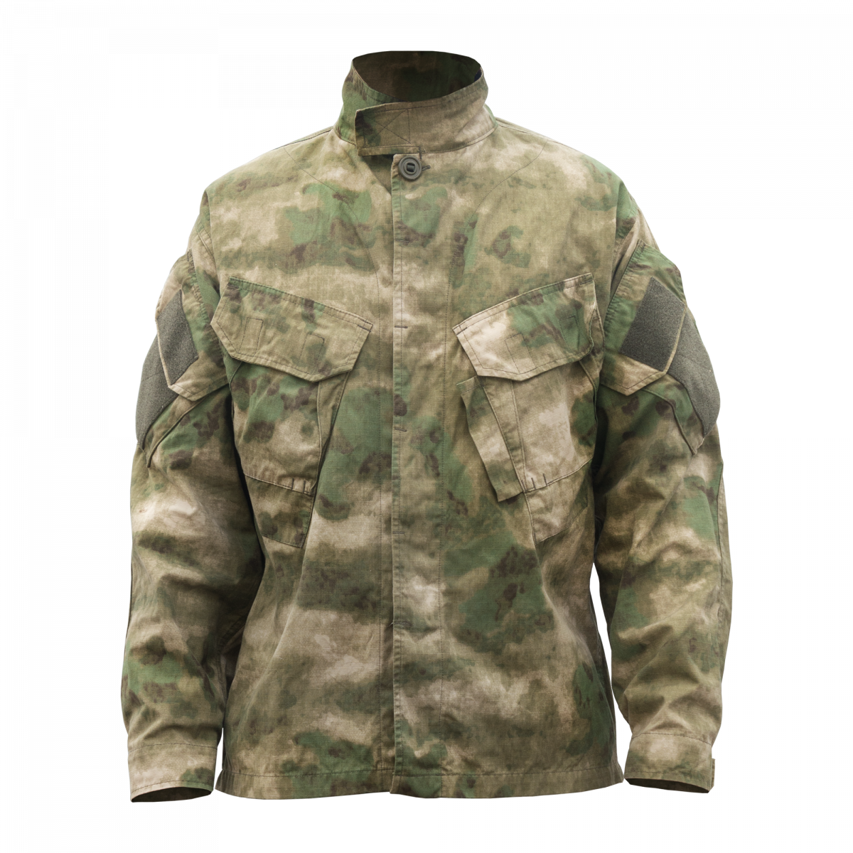 Китель полевой, прямого силуэта. Предназначен для ношения в полевых условиях и выполнения спец задач. Прямой, свободный покрой кителя и рукавов обеспечивает свободу движения и безопасность. Воротник стойка, плотно прилегает сзади к шее и имеет застёжку на ленту велкро спереди. Возможно ношение воротника стойка в отложном виде. Центральная застёжка на 5 пуговиц на тесьме (4 из них расположены на супатной – скрытой застёжке) и петли. На полочках (спереди на уровне груди) расположены накладные карманы нижний и верхний. Нижний карман с косым входом для удобства быстрого доступа и верхний объёмный карман-портфель с клапаном и застёжкой на ленту велкро. С левой стороны так же имеется дополнительный карман для карандаша/ручки.
