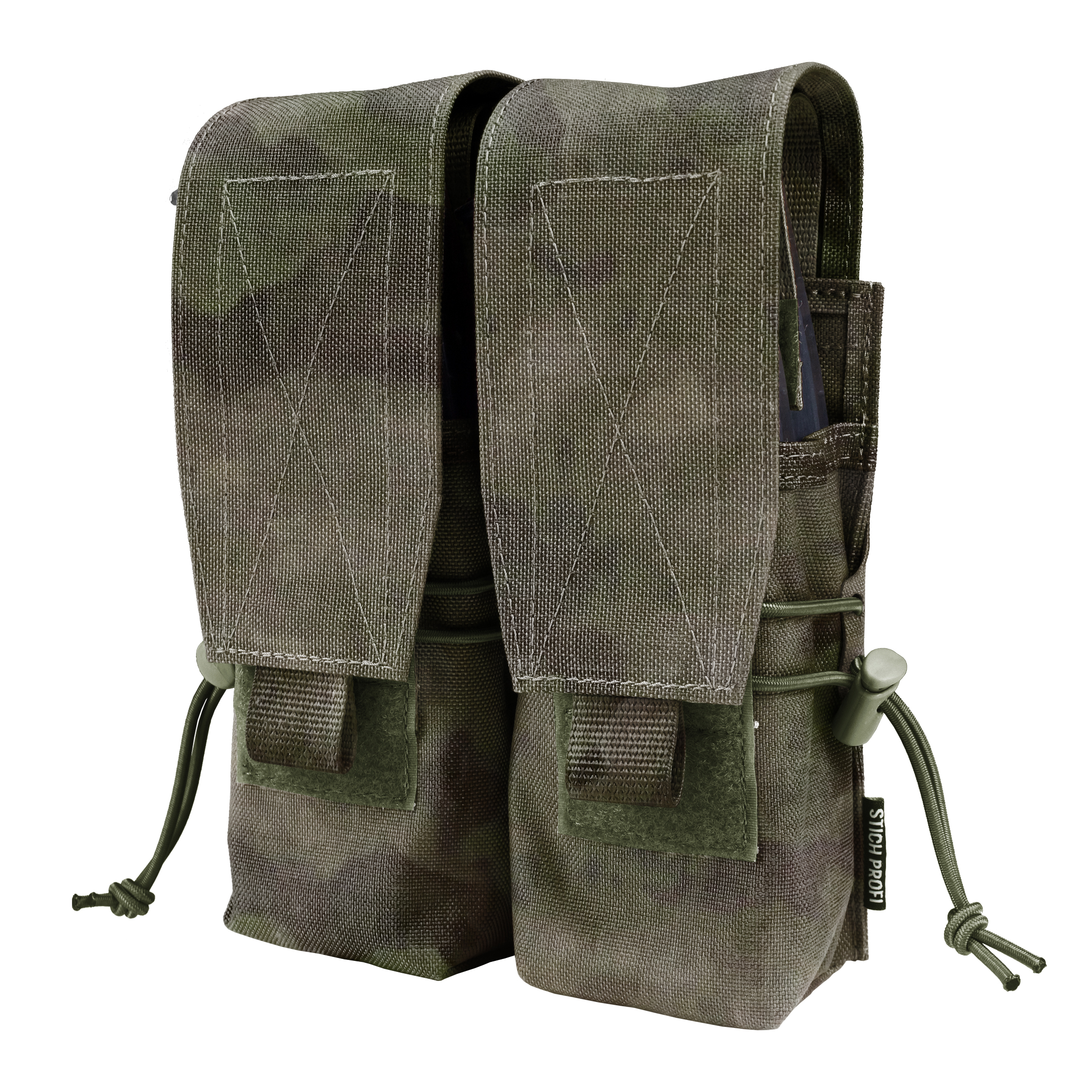 Подсумок предназначен для ношения четырёх магазинов к автомату Калашникова с креплением на модульные стропы крепления P.A.L.S.|M.O.L.L.E. и аналоги либо же на тактический ремень шириной 50-55мм.Рассчитан на перенос магазинов как 5,45х39мм, так и магазинов 7,62х39мм.