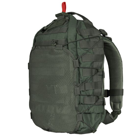 Спереди, по бокам и снизу «Айболит» полностью прошит стропами M.O.L.L.E., что позволяет навешивать на него дополнительные подсумки как медицинского, так и любого другого назначения. Также спереди с помощью эластичного шнура на рюкзаке специальными крючками можно закрепить большую компрессионную сетку.