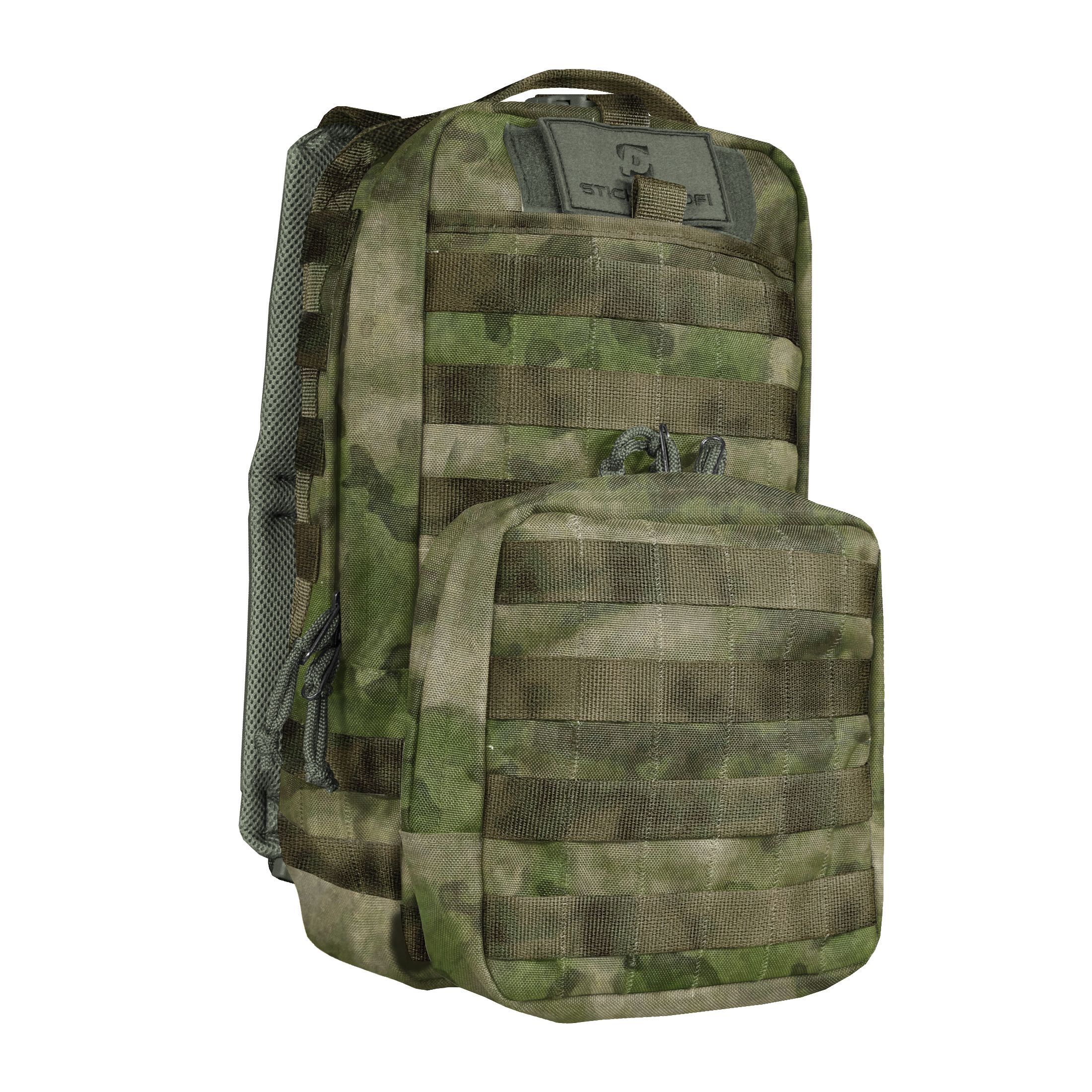 - Рюкзак комплектуется съемной двухлитровой утилитарной сумкой,позволяющей увеличить общий объем системы до 14 литров. Снаружи данный подсумок обшит крепежными стропами, а внутри имеет большой карман на одной стенке и 2 стропы Велкро на другой, что позволяет с помощью модулей превратить изделие в пистолетную кобуру, аптечку или что-то другое.