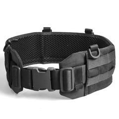 Тактический поясной бандаж, покрытый молле стропами для размещения снаряжения.