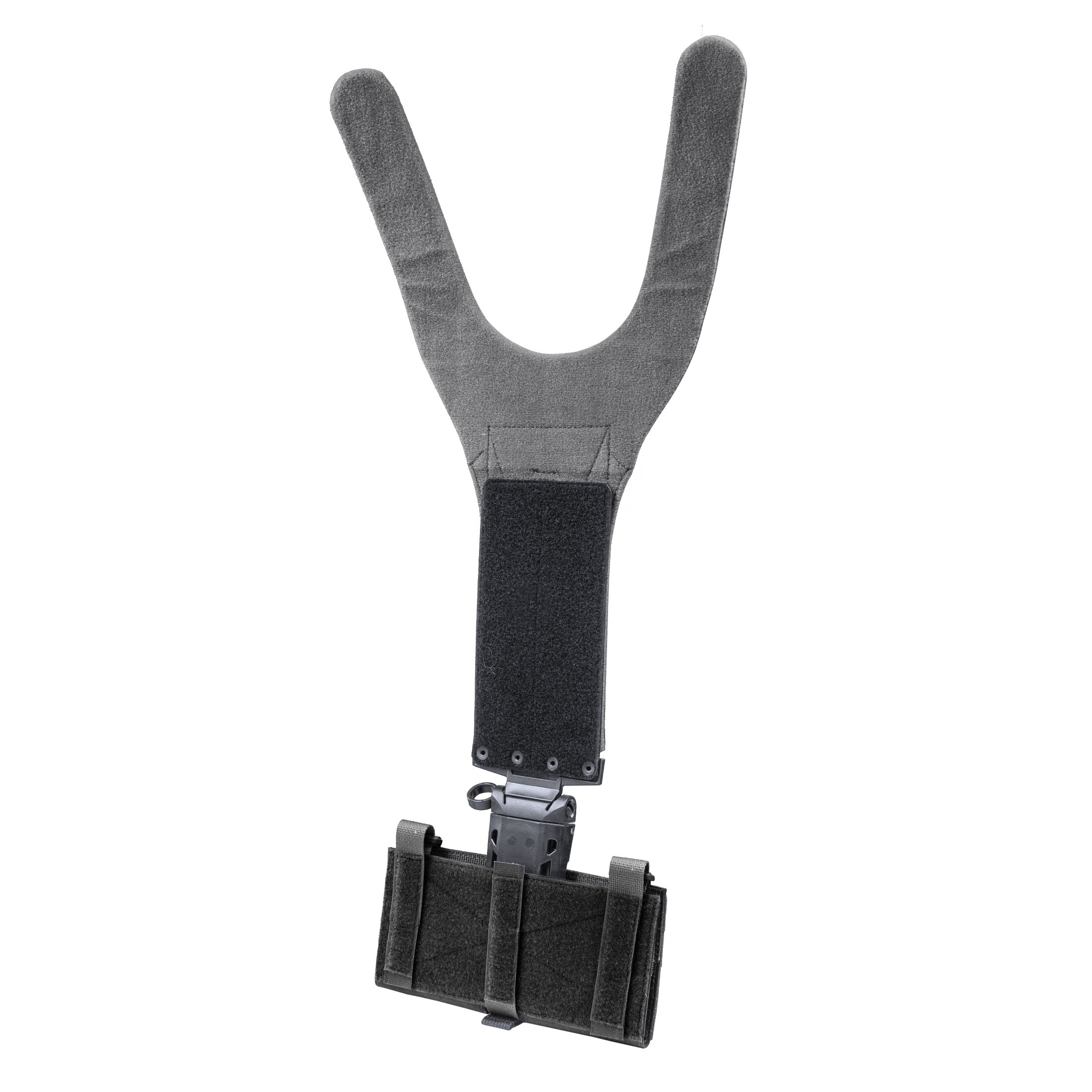 Система переноса нагрузки расположена вдоль позвоночника, что исключает вероятность повреждения и возможность зацепиться системой за оружие, ветки или оборудование.