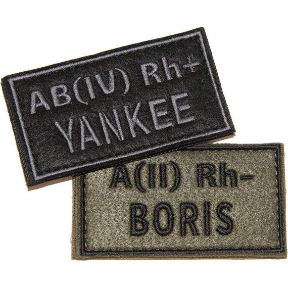 Вариант специализированного патча, позволяющий указать позывной, группу крови и резус-фактор (контрастной вышивкой в традиционной и общепринятой маркировке) пользователя. Несмотря на невозможность прямого и непосредственного применения информации, размещённой на патче (при оказании тех или иных медицинских манипуляций, связанных с переливанием или замещением крови или иными зачастую производится анализ крови на принадлежность к той или иной группе и резус-фактору), это действительно полезный аксессуар, в особенности для армейских эксплуатантов, который может быть необходим в определённых ситуациях. Габариты патча оптимизированы для ношения на обмундировании служащего, на панелях Velcro, размещённых поверх нагрудных карманов, при необходимости, возможна фиксация патча и на снаряжении пользователя.